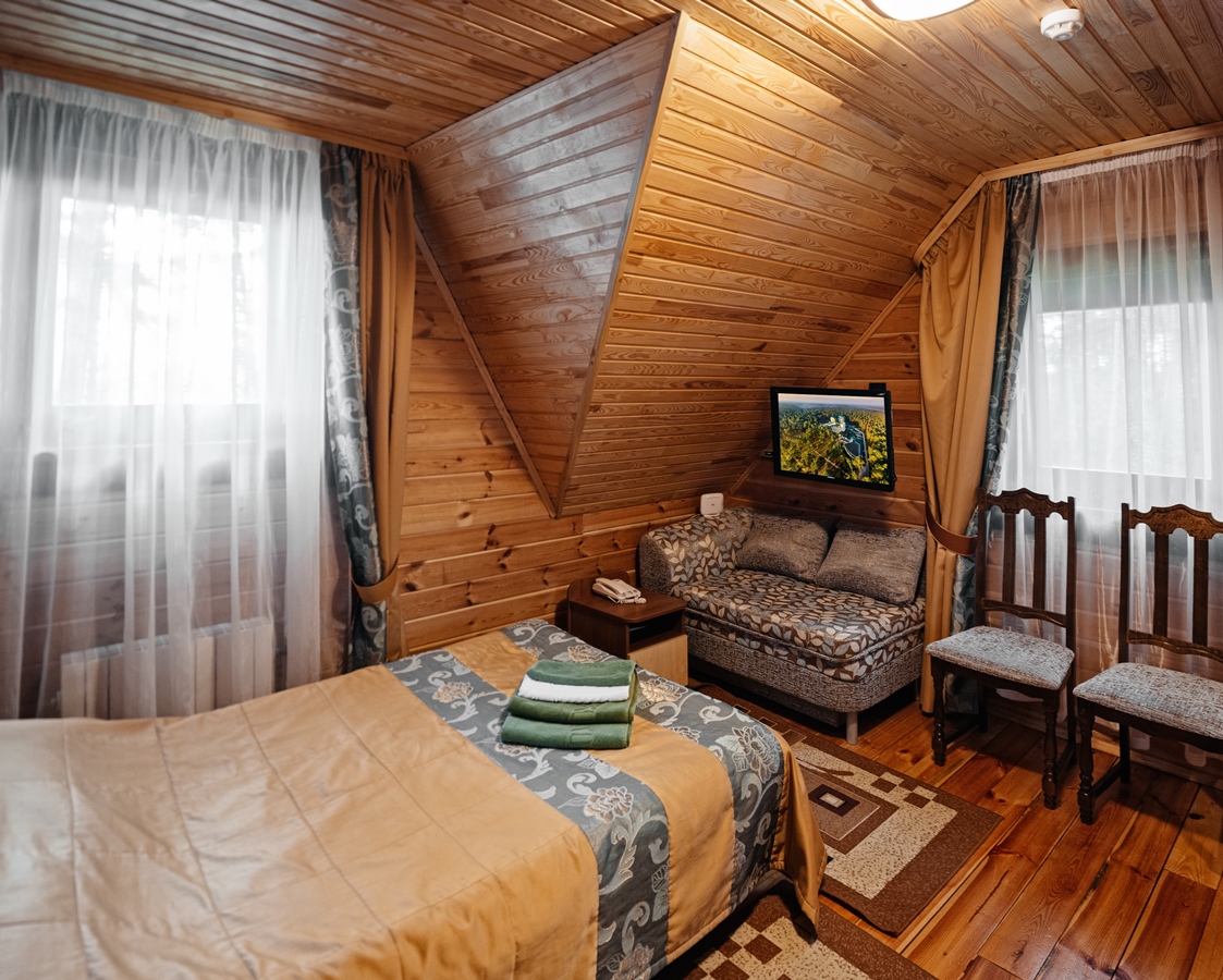 В рамках тура выходного дня Вас ждет:Для тех, кто предпочитает уединенность особенно удобным будет размещение в одном из десяти двухэтажных деревянных коттеджей. А также современные однокомнатные одноместные номера, оснащенные всем необходимым. В интерьере номера учтена каждая мелочь, создающая атмосферу уюта и комфорта для Вашего идеального отдыха.